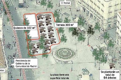 Desde el Ayuntamiento niegan que el fin último de esta remodelación del Kilómetro Cero tenga ese sentido. En noviembre el Consistorio, a través de la Junta Municipal del Centro, tendrá listos los pliegos de condiciones por los que sacará a concurso un quiosco en la plaza de 102 metros cuadrados con la posibilidad de tener una terraza de 300. El periodo de concesión es por 25 años, pero aún no se ha decidido la cuantía del canon anual.
